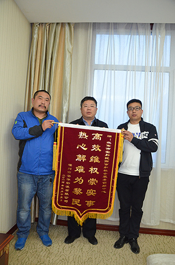 会员单位及卡车司机牛耀强向商会赠送锦旗