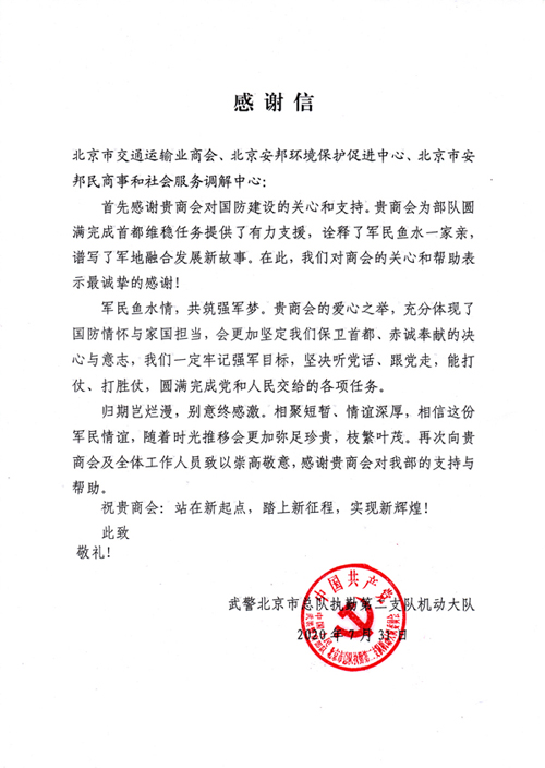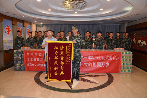 7月31日,市工商联党组副书记、副主席佘运高率领调解中心及部分商会会员企业代表,带着厚重的慰问品,来到北京武警总队执勤二支队机动四中队慰问,祝贺武警官兵八一节快乐。在慰问仪式上,佘运高副主席高度评价了武警官兵为保卫首都安全、维护首都社会稳定、促进首都经济发展所作出的巨大贡献。同时,佘运高副主席也对调解中心在今年面对疫情防控的严峻形势下,积极推动行业规范发展、帮助会员企业内部挖潜增效,还协助市政府相关职能部门对首都环境治理所做的大量积极有益工作,给予高度肯定。尤其对调解中心在服务北京高质量发展的同时,不忘我们的京城卫士的举动,给予赞扬。